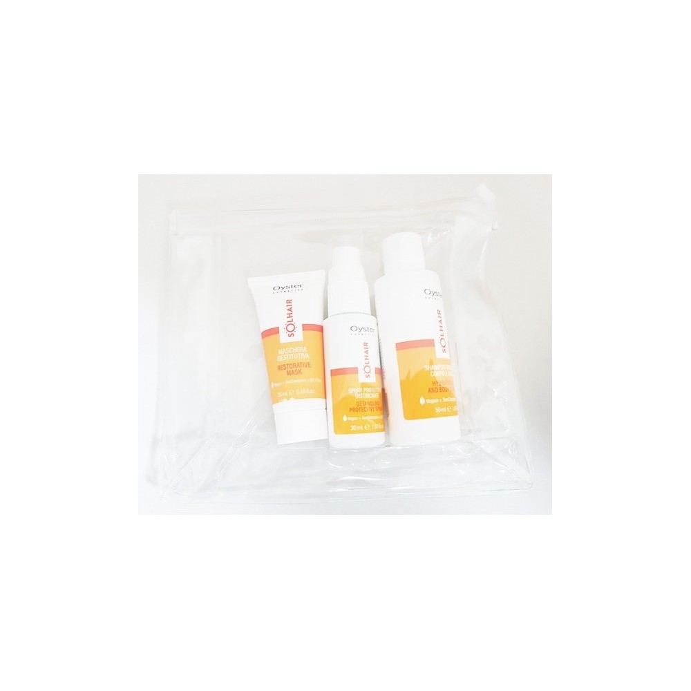 Το Oyster Solhair Kit είναι ένα πλήρες σετ για την προστασία των μαλλιών πριν, κατά τη διάρκεια και μετά την έκθεση στον ήλιο. Τα προϊόντα της σειράς Solhair της Oyster έχουν αντιοξειδωτικές ιδιότητες ώστε να προστατεύουν, να ενυδατώνουν και να θρέφουν τα μαλλιά σε βάθος..