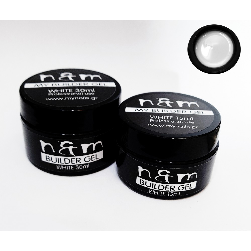 Νεα σείρα N&M Builder gel. Επαγγελματικό μονοφασικό Gel χτισίματος σε παχύρρευστη μορφή, για ένα τέλειο αποτέλεσμα που διαρκεί. Κατάλληλο για την τεχνική με φόρμα, για χτίσιμο σε tips και για φυσική ενίσχυση. Εύκολη εφαρμογή. Πολύ ανθεκτικό. Κατάλληλο για αρχάριους αλλά και για πιο προχωρημένους τεχνίτες γιατί δεν «τρέχει» μειώνοντας έτσι το χρόνο τοποθέτησης. Έχει ισχυρή πρόσφυση στο φυσικό νύχι εφόσον έχει γίνει σωστά η προετοιμασία.Διαθέσιμο σε 8 αποχρώσεις 15 και 30ml.Πολυμερίζεται σε uv / led 60/120 δευτ. Αναλόγως το φουρνάκι που έχετε.