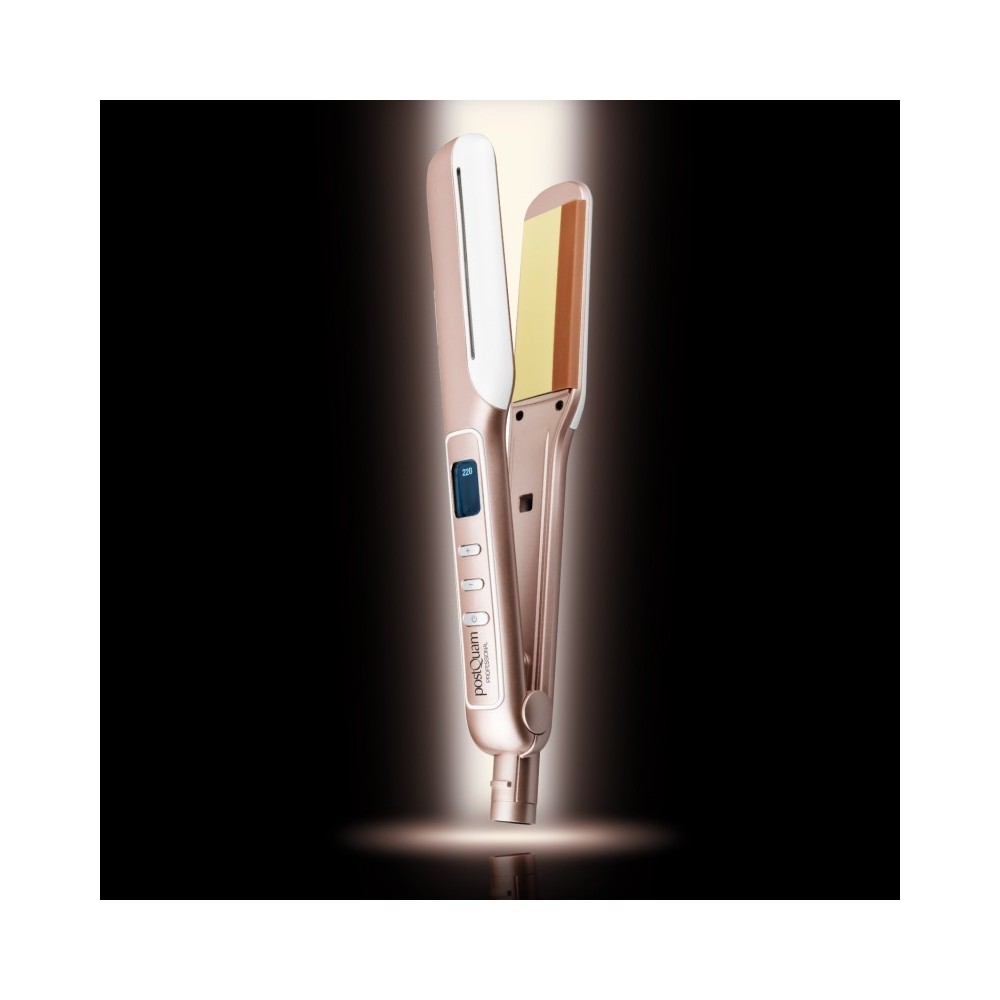 Εξαιρετικά γρήγορη θέρμανση · Ένδειξη ισχύος LED · Ψηφιακός επιλογέας θερμοκρασίας: από 140º έως 220º. · 5 λειτουργίες θερμοκρασίας · Διαστάσεις: 280 mm μήκος σύνολο ·