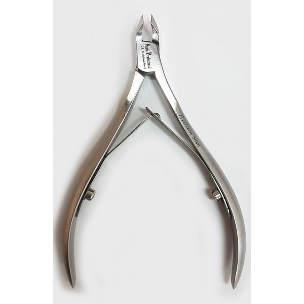 CUTICLE NIPPER 10cm MATT SATIN FINISH, LAP joint, 5mm Tip, Plain Boxlap joint, Plain handles, spring, sharp cutting edge. High leverage